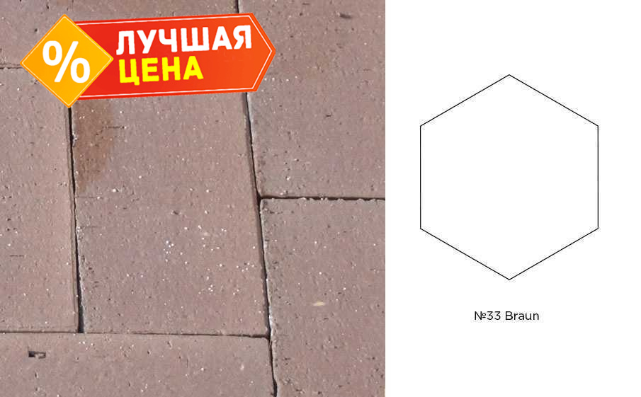 Компания КирпичПРО предлагает своим клиентам продукцию крупнейших кирпичных заводов. Мы осуществляем свою деятельность на территории Ейска и Краснодарского края. Клинкерная брусчатка Muhr №33 Braun, гексагон 200*20 мм купить по низкой цене за шт/упаковку можно связавшись с нами по телефону или оставив заявку. Производитель данной модели - Muhr, она имеет цвет - Коричневый, при этом размеры такие - Коричневый. Без фаски. Звоните и заказывайте!