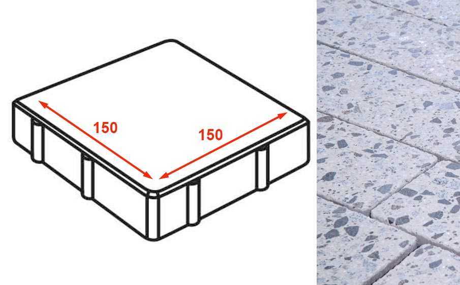 Плита тротуарная Готика Granite FINERRO, квадрат, Грис Парга 150х150х80 мм